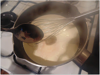 Vertemos en el cazo la nata, con la leche y el azúcar. Ponemos a calentar a fuego medio/lento. Agregamos la cucharadita de vainilla.