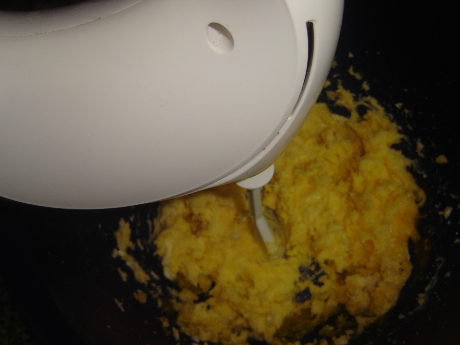 A continuación batimos las yemas con el azúcar hasta que se integren bien los ingredientes. Le añadimos a continuación la mantequilla, la harina tamizada, la levadura y el chorrito de amaretto.