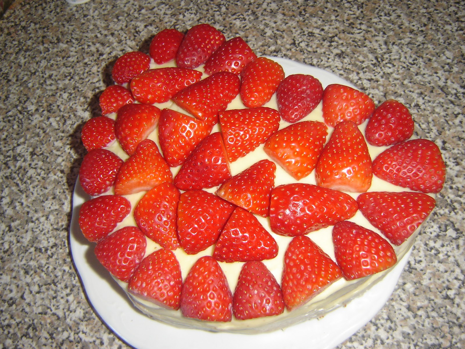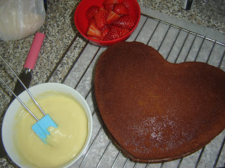 | Dejamos que repose un poco la cobertura o sino las fresas se caerán |